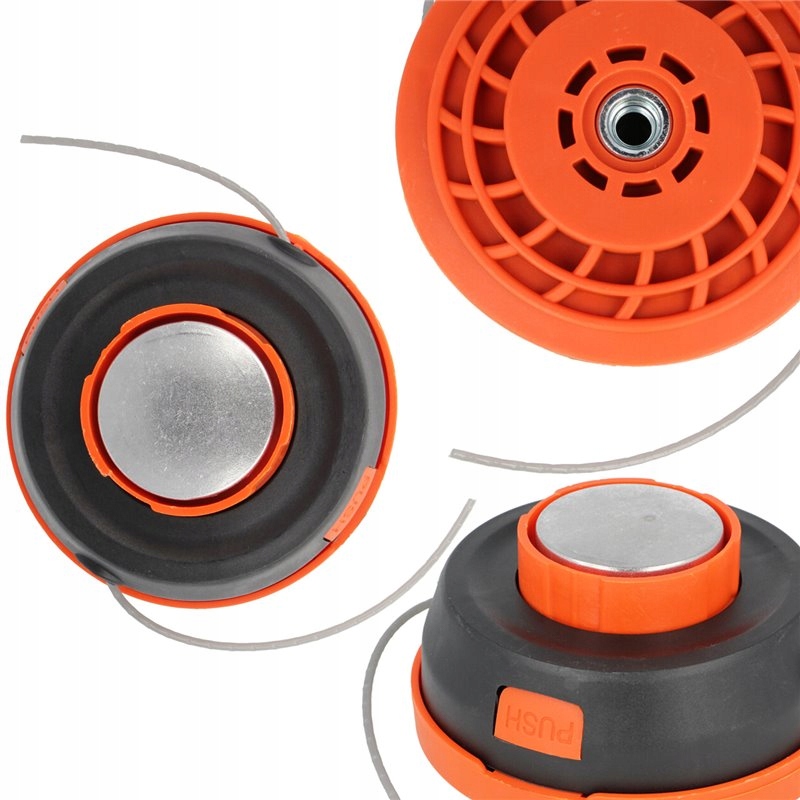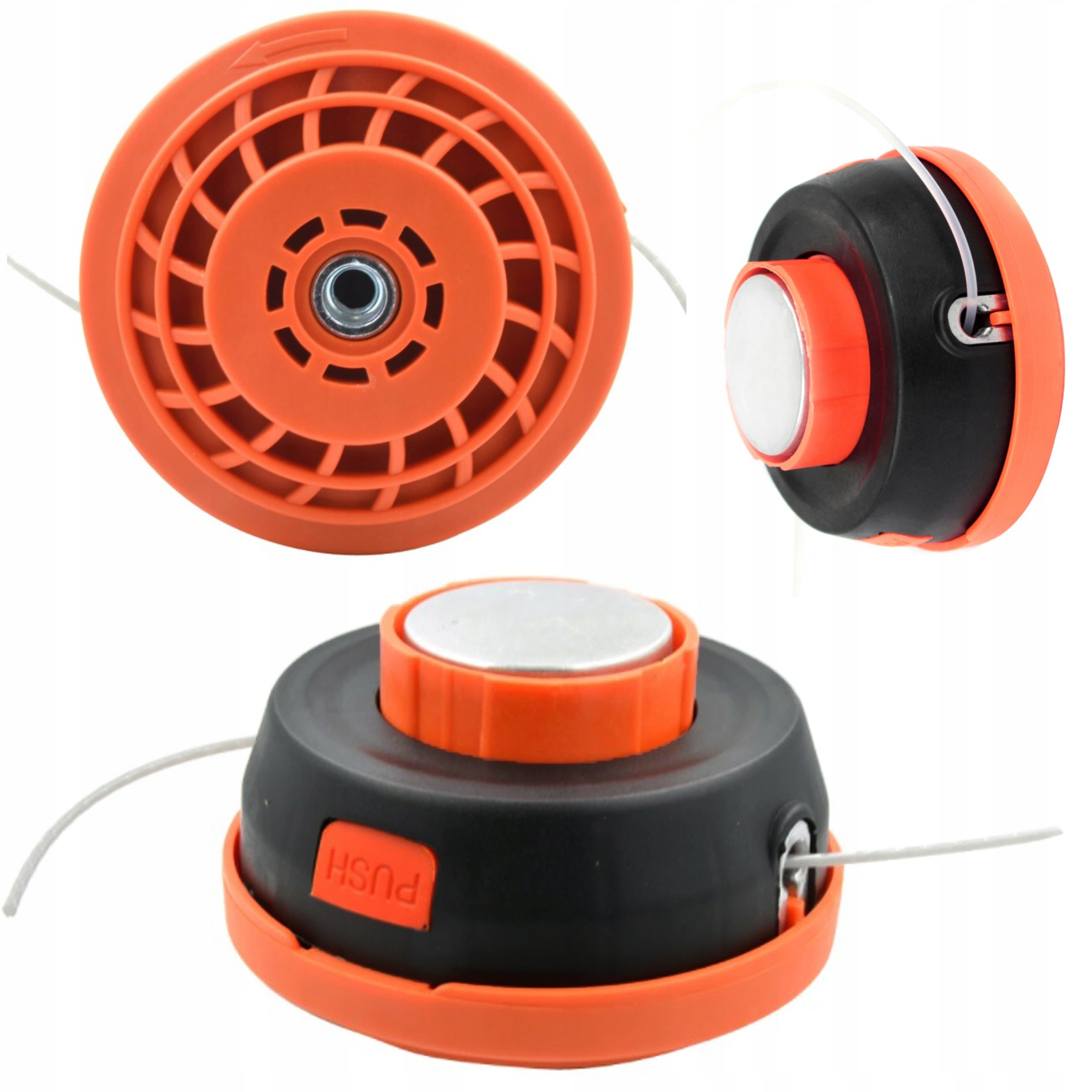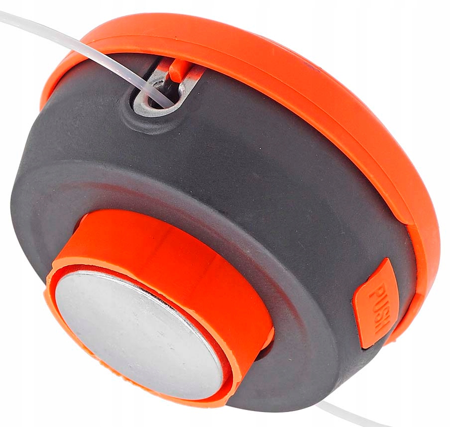 ✔️ Głowica jest półautomatyczna, wysuwająca żyłkę po uderzeniu głowicą o ziemię. Idealnie naprężony przycisk głowicy nigdy bez potrzeby nie wysuwa żyłki.