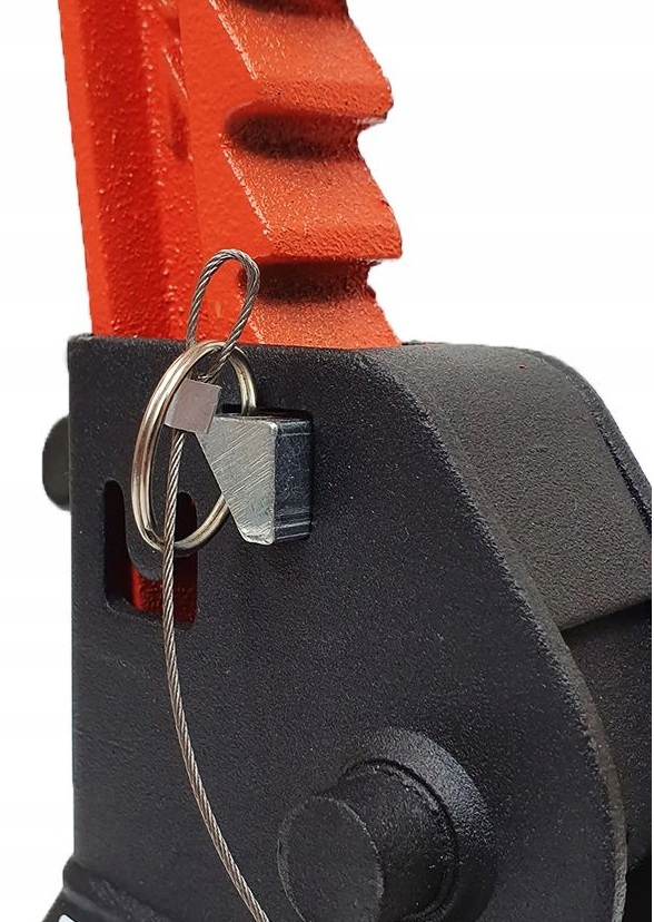 Specjalna, dodatkowa blokada w postaci bolca (pinu) zabezpiecza mechanizm zapadkowy przed niezamierzonym opuszczeniem kolumny podpory. Pin zaopatrzony jest w stalową linkę przymocowaną do korpusu kobyłki, co chroni go przed zgubieniem.