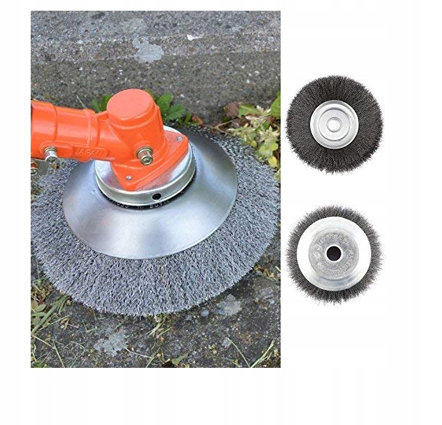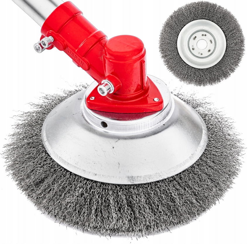 szczotkowa wykonana jest z karbowanego drutu stali odpornej na obciążenia siły odśrodkowej oraz bardzo wysokie obroty dochodzące nawet do 10tys/min. Może być stosowana bezpośrednio do urządzeń typu kosa, lub podkaszarek spalinowych .