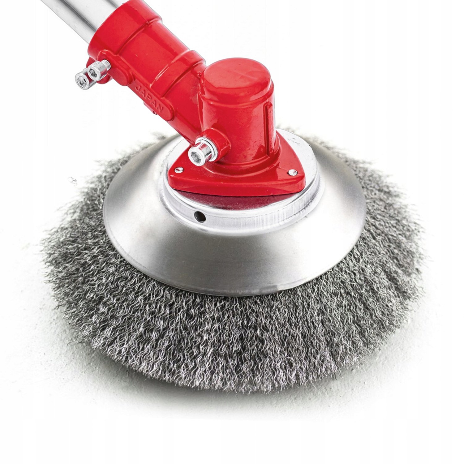 Idealna do usuwania mchu w spoinach brukowych lub powierzchownych zanieczyszczeń oraz do czyszczenia rynien ściennych itp. Szczotkę do usuwania chwastów można szybko i łatwo zmontować i zdemontować. Szczotka do usuwania chwastów pasuje do większości kos spalinowych dostępnych na rynku.