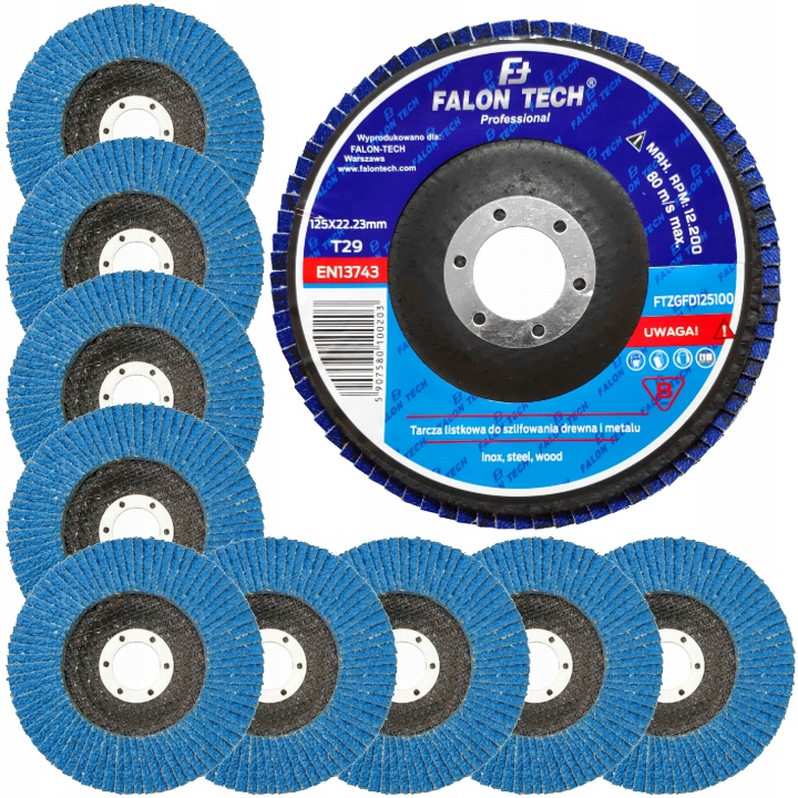 Tarcze szlifierskie do metalu, drewna firmy FALON-TECH posiadają ścierniwo wiązane żywicą syntetyczną i są wzmocnione tkaniną z włókna szklanego. Natomiast wytrzymałe ziarna ścierne z nasypu cyrkonowego odpowiadają za wysoką wydajność szlifowania metalu. Przeznaczona do szybkiego gładzenia elementów ze stali konstrukcyjnej, stali kwasoodpornej; tj.rur, profili czy blachy.