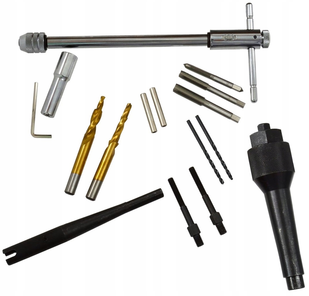 Specjalistyczny zestaw do naprawy gwintowanego gniazda świecy żarowej niezastąpiony jest po złamaniu świecy lub zerwaniu jej gwintu w głowicy.